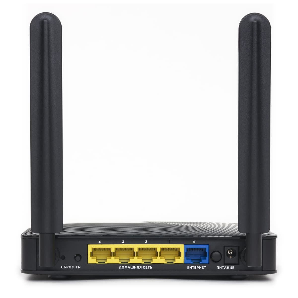 Сзади плотной группой между двумя несъемными антеннами идут: скрытая кнопка сброса, вторая многофункциональная кнопка, пять гигабитных портов LAN/WAN, выключатель питания и вход блока питания. Отказ от съемных антенн, видимо, продиктован экономическими соображениями с целью снижения стоимости устройства.