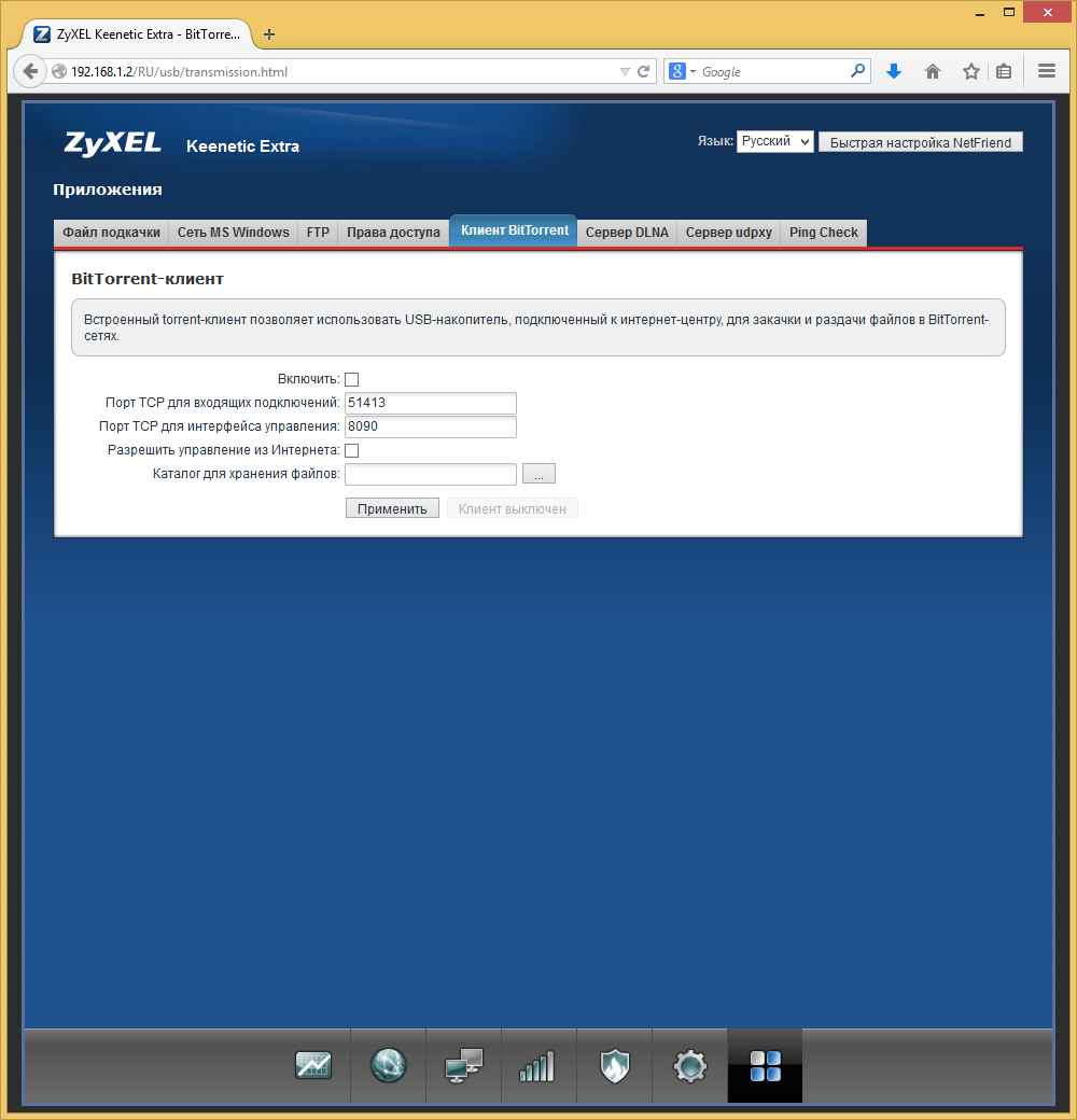 Для реализации системы автономной загрузки файлов используется известная программа transmission. Пользователю доступны основные настройки для нее, включая выбор номеров портов, ограничения скоростей и числа подключений, выбор рабочей папки и другие. Отметим, что в данных моделях максимальная скорость загрузки жестко ограничена в прошивке значением 5 МБ/с. Управлять сервисом можно через собственный Web-интерфейс программы. При необходимости можно разрешить доступ к нему из интернета. Также допускается работа специальных утилит, например Transmission Remote GUI. В тестировании на большом числе задач у нас получались скорости на уровне 2-4 МБ/с. При этом доступ к интернету работал без замечаний и имел явный приоритет.