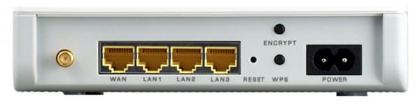 Сзади мы недосчитаемся четвертого порта LAN, их останется только три, но приобретем кнопку для настройки сети HomePlug AV. Остальное на месте — порт WAN, разъем для антенны Wi-Fi, кнопка сброса, кнопка WPS, вход питания.