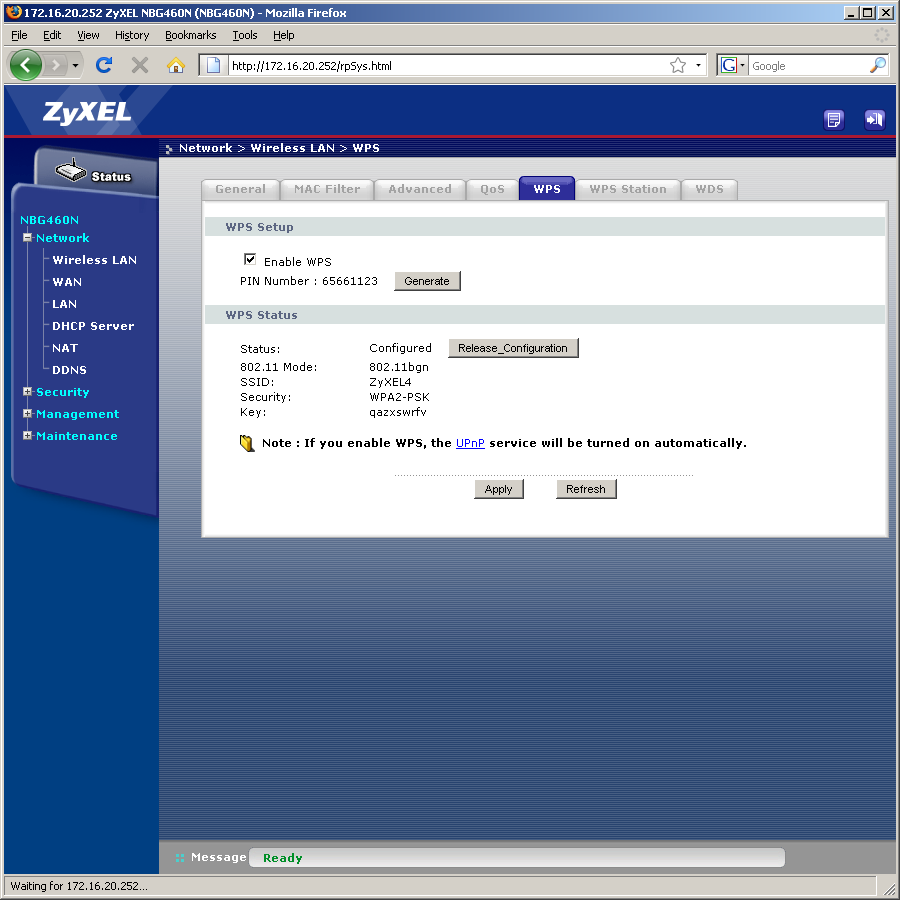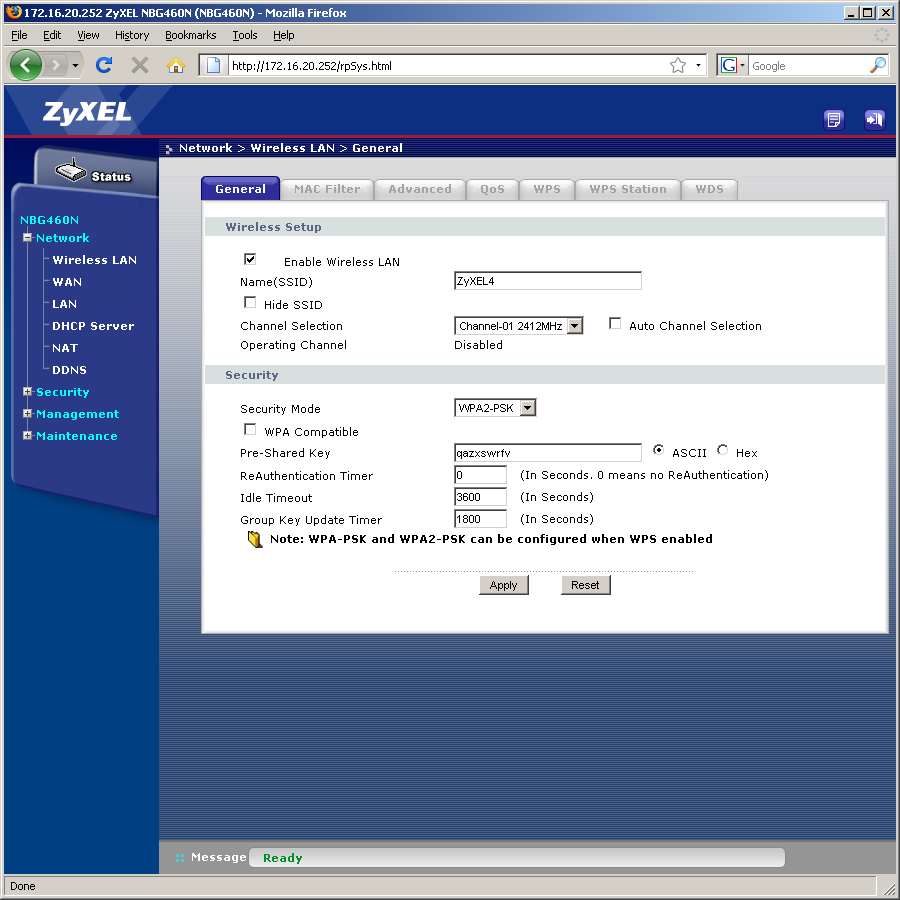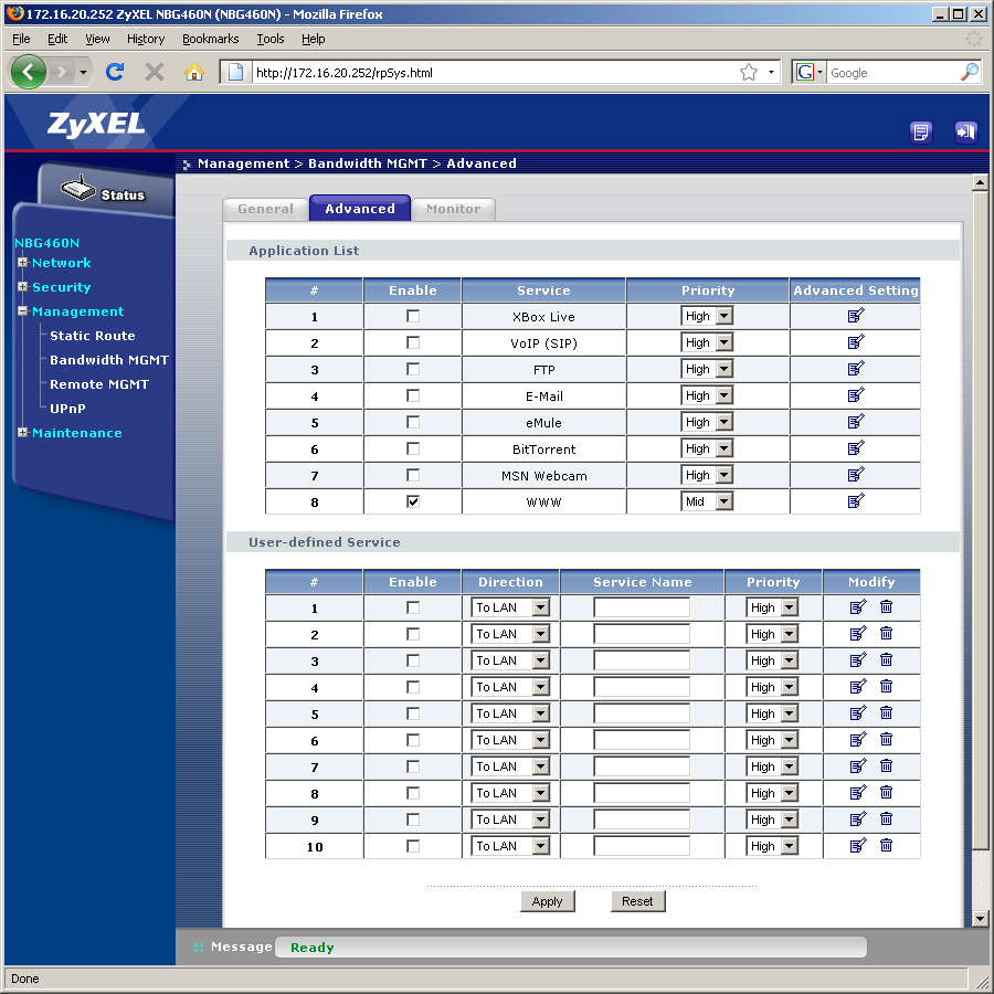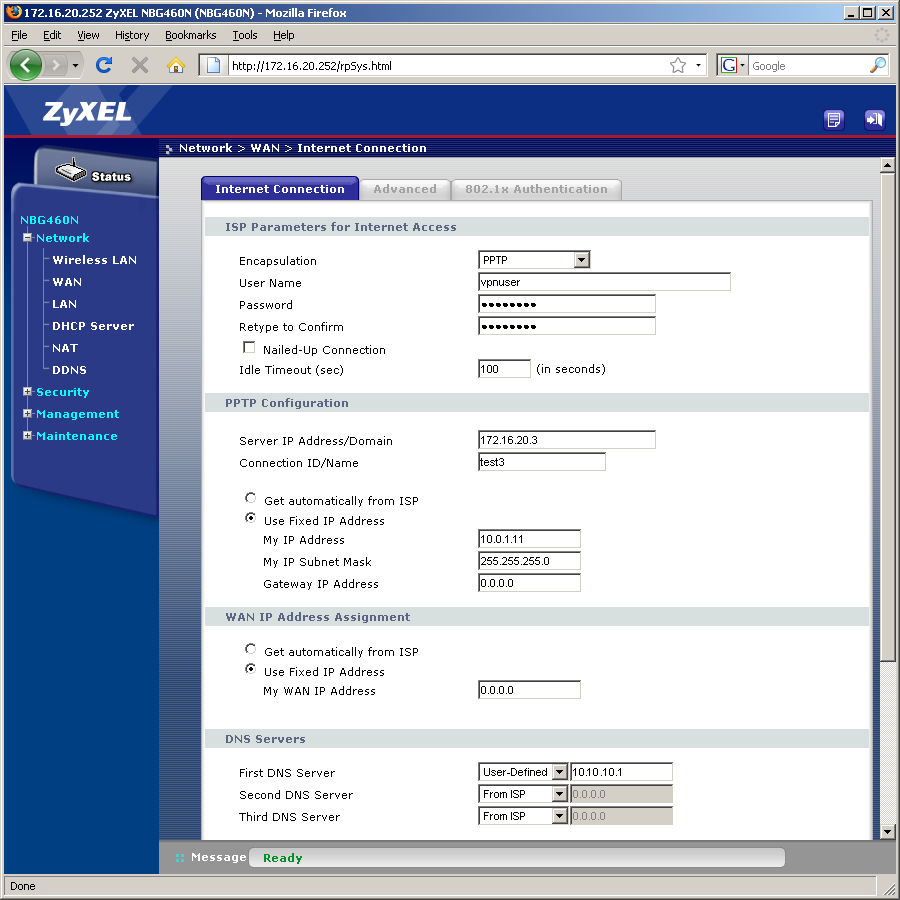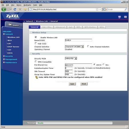 Устройство тестировалось с прошивкой версии V3.60(BFL.0)b3_20091229. На момент написания статьи еще не была окончательно сконфигурирована для NBG460N утилита для быстрой настройки устройств NetFreind, так что нам пришлось воспользоваться браузером.