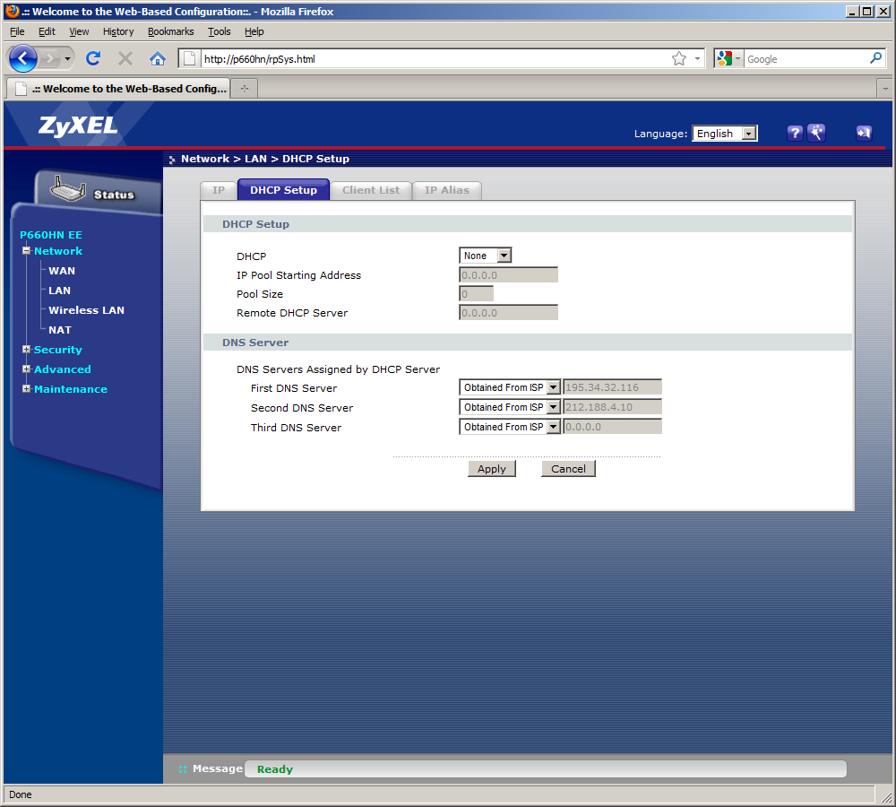 Все пункты собраны в четыре группы — «Network», «Security», «Advanced» и «Maintenance». Как уже понятно из этих слов — перевода на русский язык у него нет. Хотя есть варианты немецкого, французского, итальянского и даже турецкого.