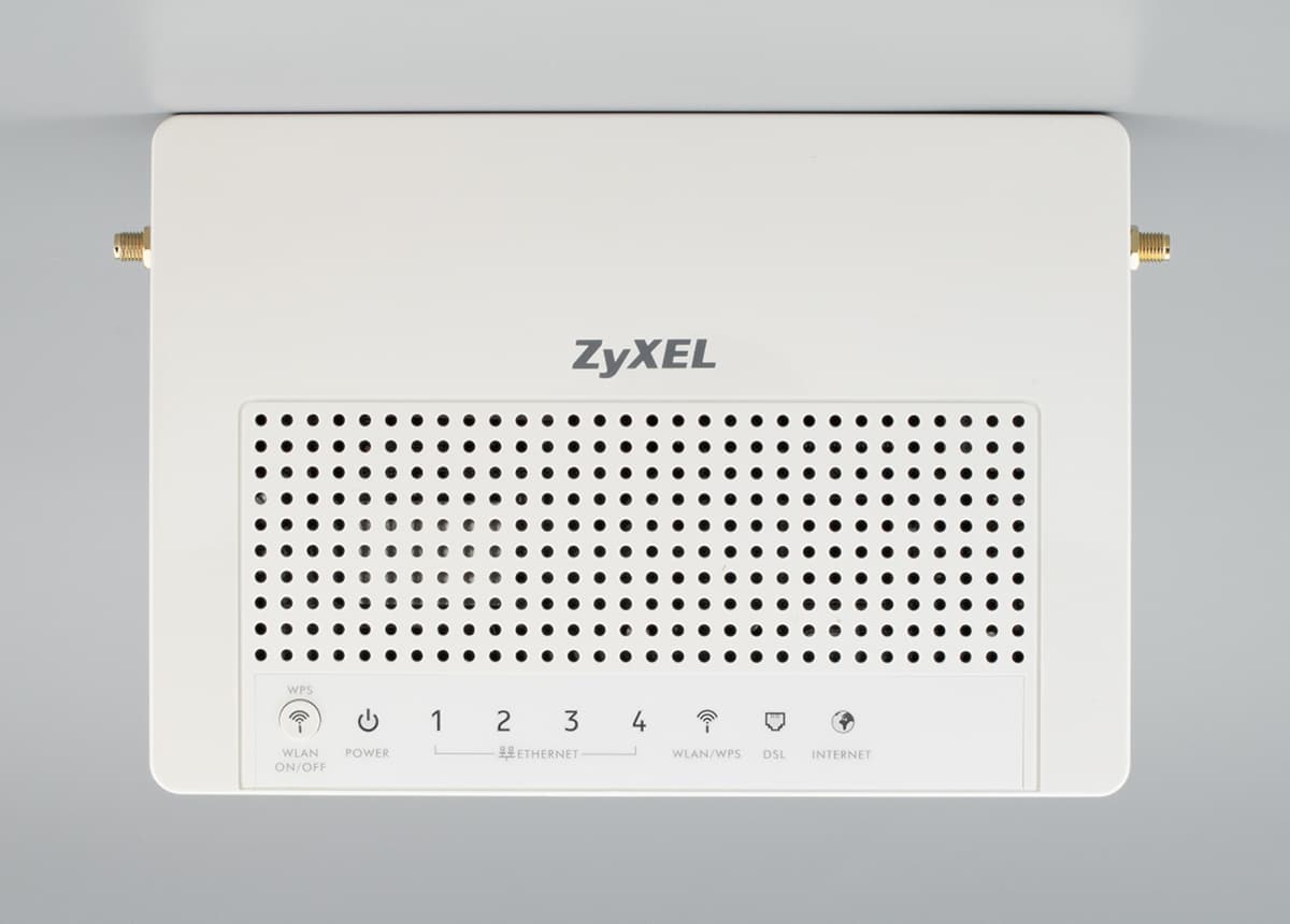 Устройство не похоже ни на одну из недавно рассмотренных моделей ZyXEL. Пластиковый корпус сверху белый глянцевый, а нижняя часть светло-серая и матовая. Требуемые размеры места размещения с учетом подключения штатных антенн и кабелей — 27×16×4 сантиметра, Антенны имеют шарниры около разъема, а их длина — около 20 сантиметров.
