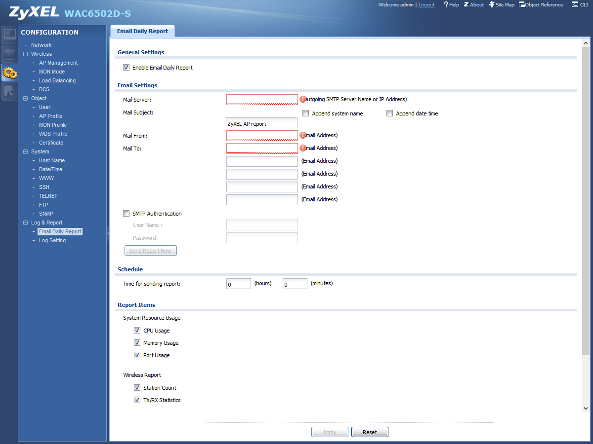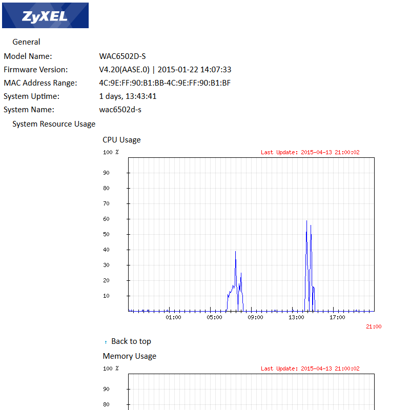 Возможности работы с событиями и отчетами также вполне соответствуют уровню устройства. В частности, предусмотрено формирование и отправка ежедневных сообщений, включающих графики загрузки процессора и оперативной памяти, трафика проводных портов и радиомодулей.