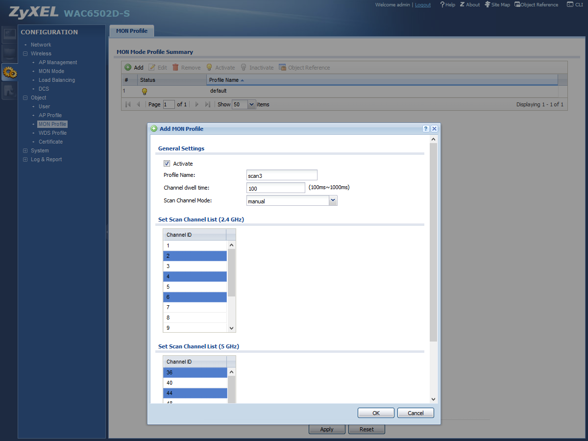 Для режима мониторинга также используются профили, где можно настроить частоту проверки и выбрать контролируемые номера каналов в каждом диапазоне. В профилях связи WDS указывается имя основной точки доступа и парольная фраза.