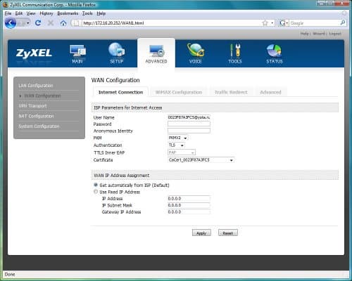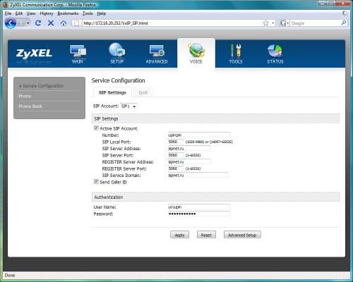 Подробнее посмотрим на возможности настроек и соответствующий им функционал. В целом они мало отличаются от стандартного набора роутеров начального уровня. Как обычно у ZyXEL, пароль по-умолчанию — «1234» и при первом входе его рекомендуется поменять. Далее следует привычный выбор из режима «помощника» и «расширенных параметров». Первый позволяет быстро настроить доступ в интернет и VoIP-аккаунты. Второй конечно более интересен.