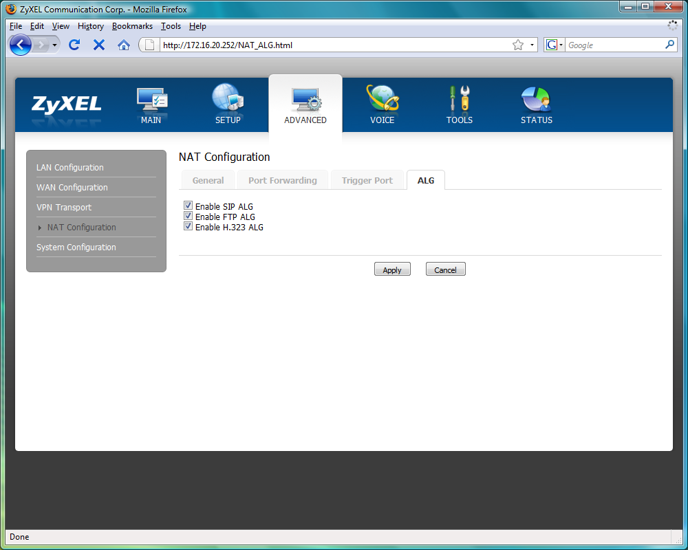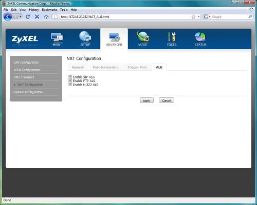 Основная современная технология для предоставления доступа к Интернет нескольким устройствам через один канал — NAT (Network Address Translation). По-умолчанию она включена и в MAX-206M2. Однако есть возможности ее отключения (это требует определенных договоренностей с провайдером и получения официальных адресов для систем в локальной сети). Если требуется «пробросить» порты (например для организации Web-сервера), то можно воспользоваться одиннадцатью записями для этого. Отметим, что транслировать можно диапазон портов, однако задать разные внешние и внутренние нельзя. Также есть двенадцать записей для «переключающих» портов и поддержка ALG для протоколов SIP, FTP и H.323.