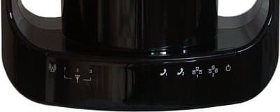 С первого взгляда устройство напоминает электрический чайник с парой ручек — черный глянцевый пластик и оригинальная форма способствуют этому. В реальности «ручки» являются антеннами и общий относительно большой размер роутера (вписывается в 17×17×12 см) обусловлен желанием удобно расположить антенны для эффективного приема сигнала. Собственно электронная начинка находится в нижней части устройства. На передней панели есть несколько индикаторов — статус подключения к сети WiMAX, уровень сигнала, два индикатора статуса аккаунтов VoIP, два индикатора подключения к локальной сети и индикатор питания. Подключения осуществляются с обратной стороны. Там можно обнаружить два порта RJ45 для подключения к локальной сети или ПК, два порта для обычных аналоговых телефонов, два разъема для внешних антенн, кнопку сброса и разъем для блока питания.