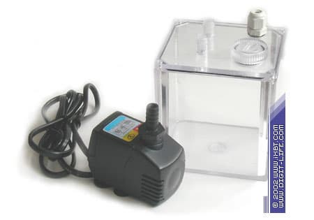 Необходимо отметить «чистокровное» происхождение помпы (производитель Hyub Shin, довольно известный в Азии бренд, модель KSP 1500) и ее неплохие технические параметры. Действительно, при своих весьма компактных размерах (75х40х50 мм), эта «малютка» выдает на-гора внушающие уважение 600 л/ч номинального расхода, характеризуется очень малым нагревом (потребляет всего 7 Вт) и демонстрирует низкий уровень акустического шума. Да и сам резервуар, «заточенный» под эту помпу, также изготовлен вполне «благородно»: прочный поликарбонатный корпус, продуманная конструкция «крышки», надежная герметизация и малые габариты достойны самых высоких похвал.