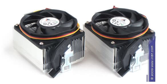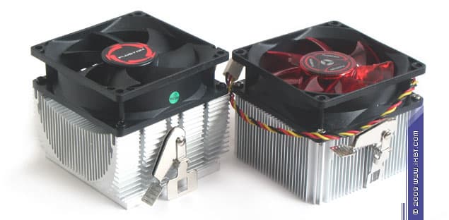 В конструктивном плане эти продукты базируются на идеологии, присущей еще «ветеранам» модельной серии CK8-8JD2B, — от своих прародителей оба кулера получают хорошо знакомый нам алюминиевый радиатор 79×77×42 мм с запрессованным в подошву медным диском 44×11 мм и неплохим подбором термических параметров (ребро трапецеидального сечения, толщина 0,8 мм в основании и 0,4 мм у вершины, средний шаг размещения 1 мм, общая площадь поверхности теплообмена порядка 1450 см²). В качестве нововведений серии CK8-9JD2B выступают модернизированные набортные вентиляторы, а также усовершенствованный крепеж.
