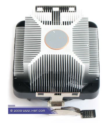 Благо, реинкарнация «индивидуалиста» от Foxconn оставляет все его технические изыски на своих положенных местах — это и усложненное оребрение, которое взращено на базисной U-образной несущей, и вполне позитивный параметрический комплекс (ребро трапецеидального сечения, толщина 1 мм в основании и 0,3 мм у вершины, средний шаг размещения 1,5 мм, общая площадь поверхности теплообмена порядка 1400 см²), и добавочный технический бонификатор — запрессованный в подошву медный диск 36×4 мм. А значит, «новичок» FCAM22BAC-3P имеет фактически стопроцентный шанс, чтобы продемонстрировать не менее интересную результативность, которая была отмечена в «личном деле» родительского кулера.