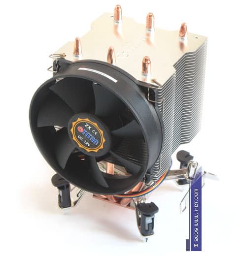 Специалистам Titan надо отдать должное — они проделали очень серьезную работу над ошибками, учли все негативные моменты, присущие модели TTC-NK32TZ (визитной карточкой которой, к слову, стал весьма «сырой» конструктив с массой технических недочетов), и в лице TTC-NK35TZ/PW(BX) выдали уже вполне добротный, отлаженный продукт. Прежде всего, у нашего «новичка» заметно похорошел сам радиатор — теплорассеивающая секция теперь обходится без гигантомании (от 55 пластин осталось только 37, но с более разумным шагом размещения — 2 мм, лучшей продуваемостью и даже большей величиной эффективной поверхности теплообмена), а сопряжения рабочих элементов выполнены добротно и без халтуры (опрятная пайка в контакте теплосъемника с трубками, плотное обжатие трубок в оребрении). Вполне уместным выглядит и новый набортный вентилятор — в отличие от откровенно слабого и, по сути, низкокачественного вентилятора TTC-NK32TZ, он предъявляет намного более солидное аэродинамическое оформление, подкрепленное вполне приемлемой механикой и электрикой. И опять же, разумным нововведением выступает мультплатформенный крепеж, полезность которого была очевидна еще в рамках «ветеранов» TTC-NK32TZ и TTC-NK34TZ (но там он, увы, так и не появился).
