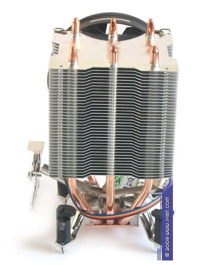 Чисто термическая начинка, хорошо зарекомендовавшая себя в рамках родительских серий Igloo 7220 и Igloo 7222, остается без изменений. Радиатор Igloo 7223 получает традиционные катализаторы тепловой эффективности — ребро трапецеидального сечения и чередование высоты ребра (то есть, симбиоз инструментов, обеспечивающих повышение эффективности оребрения и усиление продува межреберных каналов), которые сдобрены продвинутым параметрическим комплексом (толщина ребра в основании — 0,5 мм и 0,2 мм у вершины, средний шаг размещения — 1,5 мм, общая площадь поверхности теплообмена — порядка 1550 см²).
