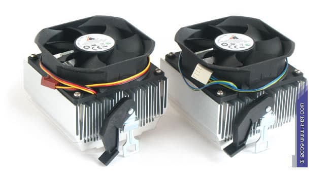 На поверку, обновленные вентиляторы не только облагораживают имидж наших подопытных относительно родительских кулеров (за счет улучшенного баланса производительности и шумовых характеристик), но и способствуют более четкому разграничению сферы их применения. Так, вентилятор «крепыша» CK8-9JD2B-PL-GP вместе со схемой ШИМ-регулировки оборотов (диапазон 800–4200 об/мин) приправлен солидным набором аэродинамических бонификаторов (агрессивная конфигурация крыльчатки, решетчатый и сужающийся в направлении потока патрубок, номинальный типоразмер 92×92×25 мм) — то есть, в своем техническом наполнении этот кулер демонстрирует ориентацию на максимально широкий спектр процессоров, с тепловой эффективностью, достаточной и для «холодных» двухядерников, и для топовых четырехядерников AMD. А «тихоня» CK8-9JD2B-0C-GP, снабженный «инвертированным» вентилятором типоразмера 92×92×25 мм со встроенной схемой термоконтроля (обороты варьируются в пределах от 600 до 2800 об/мин, температурный диапазон 35–55 °C), нацелен в основном на маломощные модели процессоров. Он отличается практически бесшумным функционированием, если тепловая нагрузка не превышает 45–60 Вт (в этих условиях скорость вращения крыльчатки остается на «дефолтном» уровне — 600–800 об/мин).