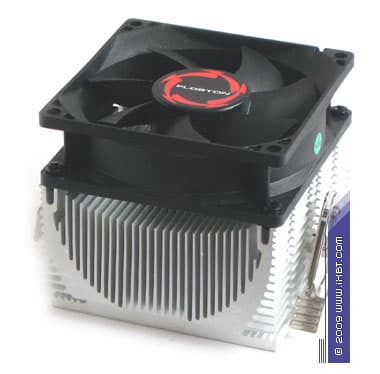 Конструктивное содержание другого бюджетника Floston — FCAM-40SAC, уже вполне самостийно. Однако и в его техническом портрете тоже присутствует определенная изюминка: «рабочее тело» кулера образовано алюминиевым радиатором со специализированным Х-образным оребрением (общие габариты 80×78×40 мм), которое приправлено неплохой параметрикой (толщина ребра 0,8 мм, шаг размещения 1,5 мм, общая площадь поверхности теплообмена порядка 1200 см²) и дополнительно облагорожено «интегрированным» в подошву медным стержнем 28×20 мм.