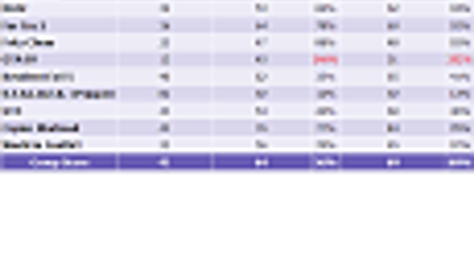Lightwave | 91 | 89 | -2% | 94 | 3% |