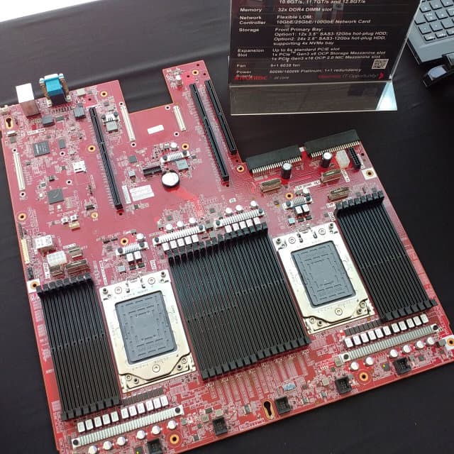 Еще одним важным преимуществом процессоров AMD является поддержка односокетных систем, в отличие от большинства решений конкурента, имеющих двухсокетный дизайн. Системы с одним процессором предложат пользователям достаточно большое количество вычислительных ядер, поддержку 2 ТБ быстрой памяти и целых 128 линий PCI Express, которые можно использовать для различных целей. Например, вот один из однопроцессорных 1U серверов на Epyc (отдельное внимание обратите на размер платы):