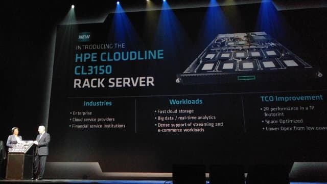 О поддержке серверных продуктов AMD и выпуске решений на их основе сообщили такие крупные производители, как Asus, Dell EMC, HPE, Inventec, H3C, Lenovo, Gigabyte, Supermicro, Sugon, Tyan и Wistron. HPE представила системы серии Cloudline (CL3150), оценив заодно и преимущества Epyc перед процессорами Intel, в Dell EMC подготовили на базе новых процессоров AMD односокетный сервер 14G PowerEdge, хоть и пока что не показывали его вживую.