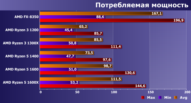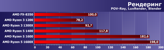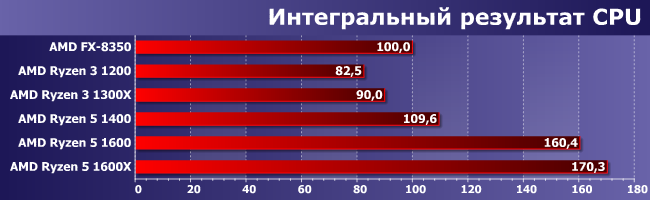 | Процессор | AMD FX-8350 | AMD Ryzen 3 1200 | AMD Ryzen 3 1300X | AMD Ryzen 5 1400 | AMD Ryzen 5 1600 | AMD Ryzen 5 1600Х |