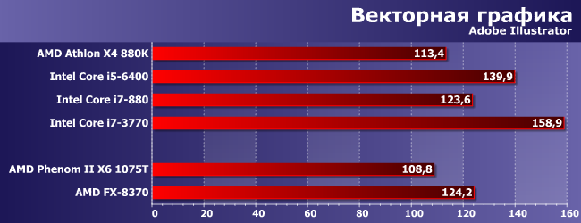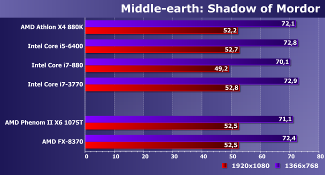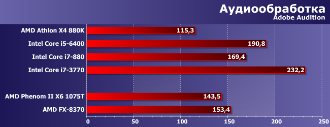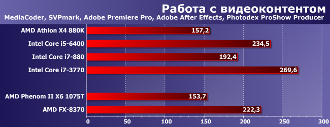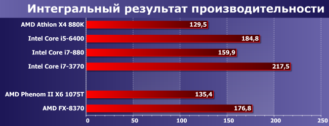 | Процессор | AMD Athlon X4 880K | Intel Core i5-6400 | Intel Core i7-880 | Intel Core i7-3770 |