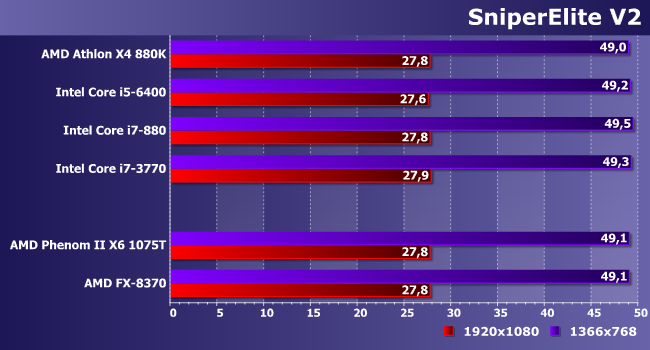 А здесь все примерно одинаковы — различия есть только в режиме со сниженным разрешением. И, что забавно, они скорее в пользу АМ3+, чем наоборот.