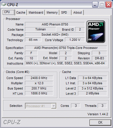 Краткое описание нашего сегодняшнего героя выглядит очень просто: это отбраковка Phenom X4, у которых не заработало как нужно одно из ядер. Не скрывает этого даже сама AMD (да и к чему бы — всё и так очевидно). Напомним, что в отличие от четырёхъядерников Intel, которые представляют собой, фактически, «склейку» из двух двухъядерных процессоров, помещённую в корпус, четырёхъядерники AMD — это действительно единый кристалл. Соответственно — площадь у кристалла получается относительно большая, а где большая площадь — там большой процент брака. Именно ради того, чтобы не пускать весь брак в отходы, был «придуман» Phenom X3.