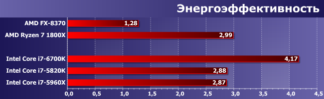 Главное же то, что все это вообще не идет ни в какое сравнение с архаичной АМ3+, на которой даже при простом копировании данных требовалось столько же энергии, сколько АМ4 с топовым процессором «в среднем». А «в среднем» FX-8370 вместе с обвязкой «жрал» почти столько же, сколько Ryzen 7 1800X со своим окружением по максимуму. То есть в данном случае прогресс еще более внушительный, чем при рассмотрении одной лишь производительности.