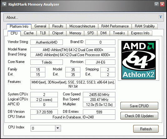 - CPU RightMark 2005 Lite (1.3) x64 edition