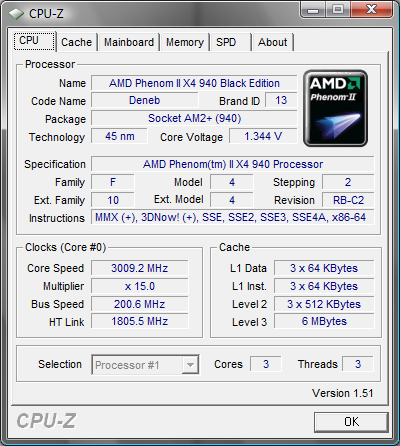 | Процессор | Phenom II X4 940 (1 core*) | Phenom II X4 940 (2 core*) | Phenom II X4 940 (3 core*) | Phenom II X4 940 (4 core*) |