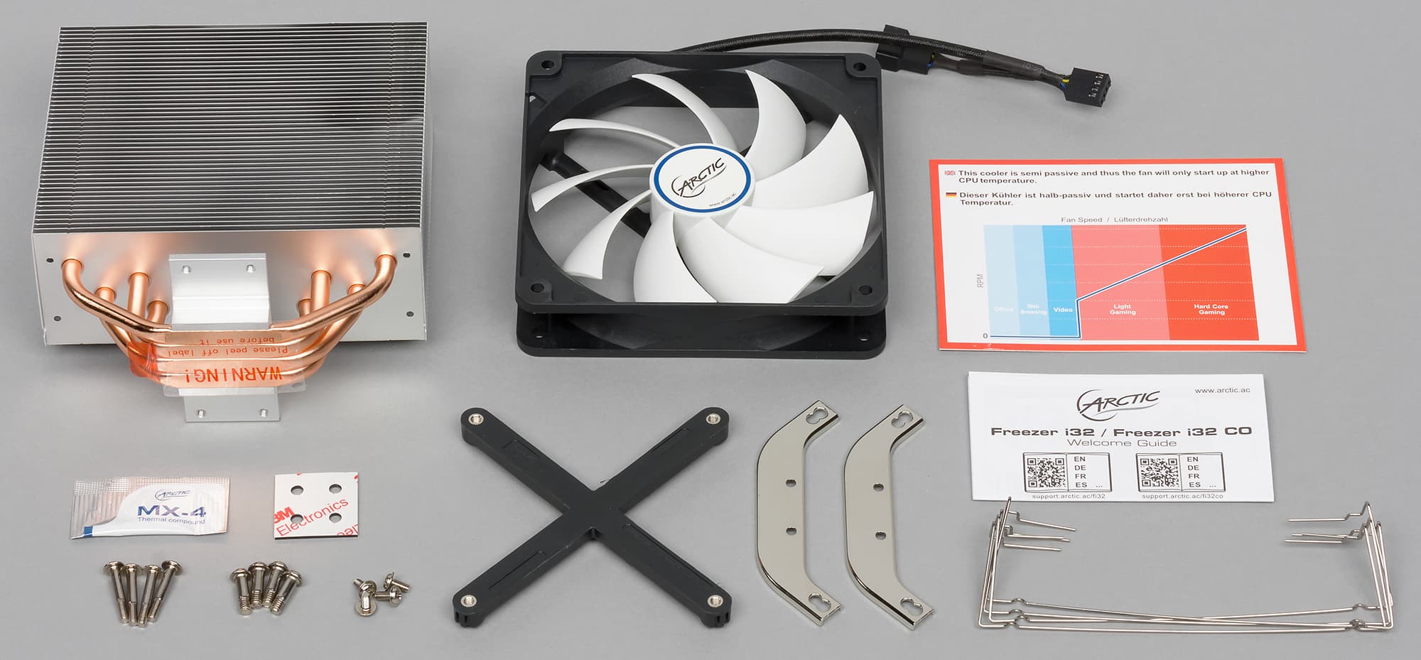 Производитель пишет, что в сравнении с предыдущей моделью Freezer i30 в конструкцию кулера Arctic Freezer i32 внесены ряд улучшений, способствовавших повышению охлаждающей способности и уменьшению шума.