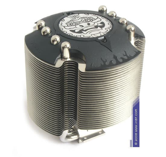 «Первооткрыватель» сегодняшнего обозрения Lion Square, аккуратно и с должным прилежанием подхватывает хай-эндовый тон, заданный своим предшественником Silent Knight II: в имидже нашего подопытного отчетливо проступает стремление разработчиков сделать все, так сказать, по высшему разряду, избегая компромиссов и недомолвок. Кулер действительно впечатляет вкупе с «боевым» экстерьером, приправленным восточным колоритом, Lion Square предлагает продвинутый конфигурационный комплекс, который образован содружеством медного теплосъемника 35х30х7 мм, 4 медных тепловых трубок диаметра 8 мм, алюминиевого оребрения усложненной «радиально-башенной» структуры (эффективные габариты 125х90 мм) и «интегрированного» вентилятора типоразмера 92х92х25 мм (номинальная скорость вращения 2300 об/мин, ШИМ-контроль оборотов).