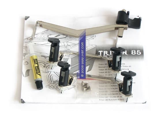 Если теперь из технической плоскости перейти в плоскость эксплуатационную, то все каверзные вопросы, в тему и около нее, автоматически снимаются с повестки дня идеология крепежной системы Triton 85 во многом схожа с Lion Square, эргономичные наработки которого закономерно остаются на своих местах и даже преумножаются. Так, на платформе AMD Socket AM2 инсталляционные процедуры по-прежнему производятся с помощью знакомой нам крепежной скобки быстро и без затей, не сложнее, чем в случае с типовыми боксовыми кулерами. Не наблюдается каких-то затруднений и на платформе Intel LGA775, где Triton 85 подразумевает фиксацию радиатора посредством двух планок, снабженных референсными замками-кембриками операция демонтажа материнской платы из корпуса тут не требуется, сам кулер встает в сокет довольно плотно и с соблюдением нормативного усилия прижима, чему отчасти способствует его сбалансированный весовой параметр (масса порядка 530 г).