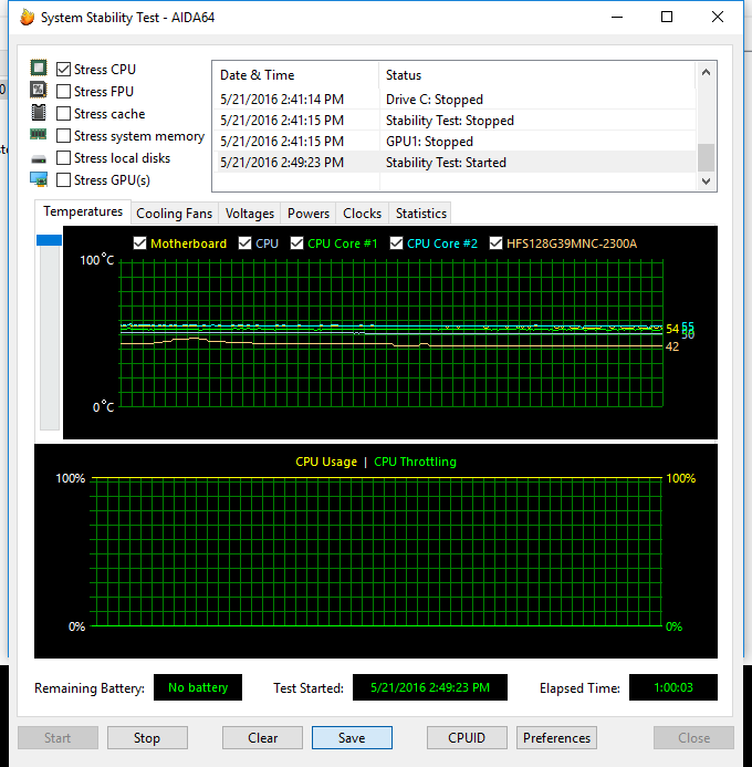 Под нагрузкой на блоки целочисленных вычислений они разгоняются до 2,7 ГГц, что превышает базовую частоту чипа. Температуры ядер и диска повышаются до 55 и 43 градусов соответственно. Вентилятор в этом случае работает на 3700 об/мин. Уровень шума, производимого компьютером, практически не меняется.