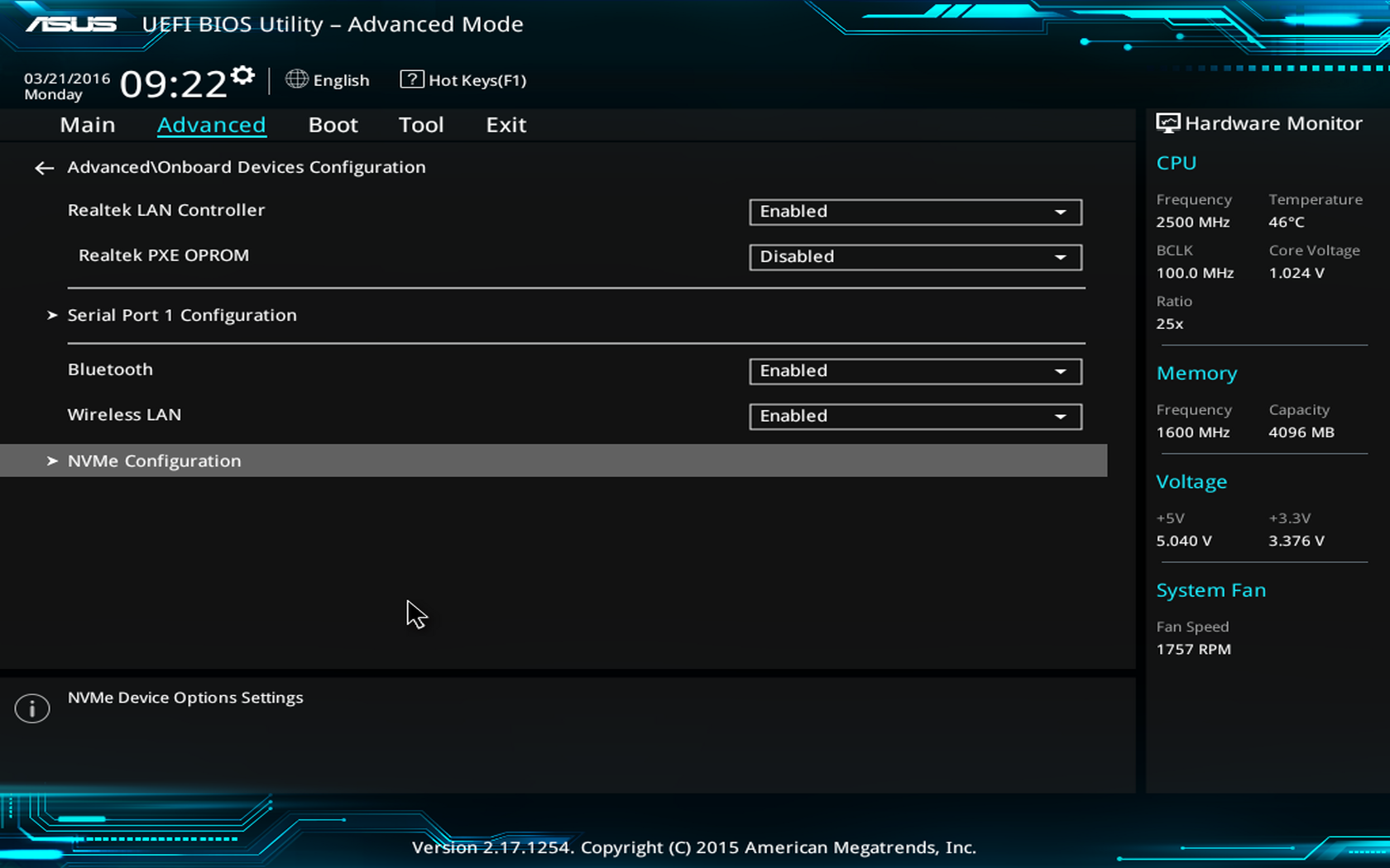 Наиболее полезными опциями в разделе Advanced являются пункты выбора режима SATA (AHCI или RAID) и отключения дополнительных встроенных контроллеров. Никаких возможностей по разгону процессора или других тонких параметров в рассматриваемом устройстве не предусмотрено.