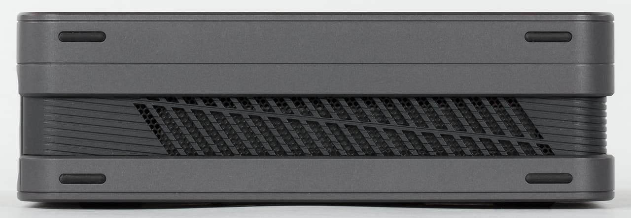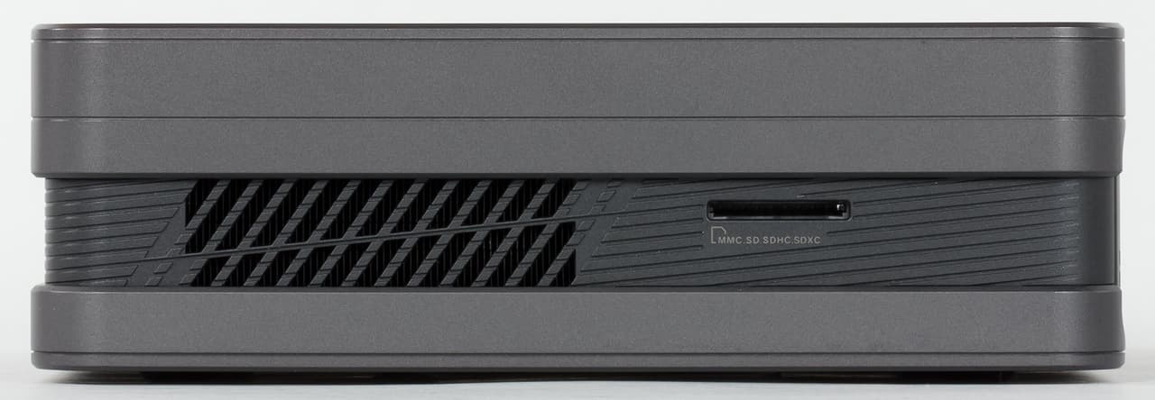 На левом боку есть только входная решетка вентиляции, а справа можно увидеть полноразмерный слот для карт памяти MMC, SD, SDHC, SDXC и еще одну решетку для выхода воздуха уменьшенного размера.