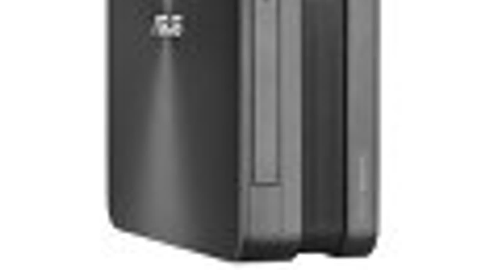 Дизайн корпуса компьютера скорее утилитарный, чем изысканный. Учитывая позиционирование модели, это не является недостатком. Тем более, что качество изготовления на высоте, как и ожидается от такого производителя, а материалы подобраны удачно. Внешние элементы корпуса изготовлены из темно-серого пластика с примесью металлика. Верхняя и нижняя крышки имеют знакомый по другим устройствам Asus мелкий рисунок в виде концентрических окружностей. Сверху в центре также можно заметить логотип производителя.
