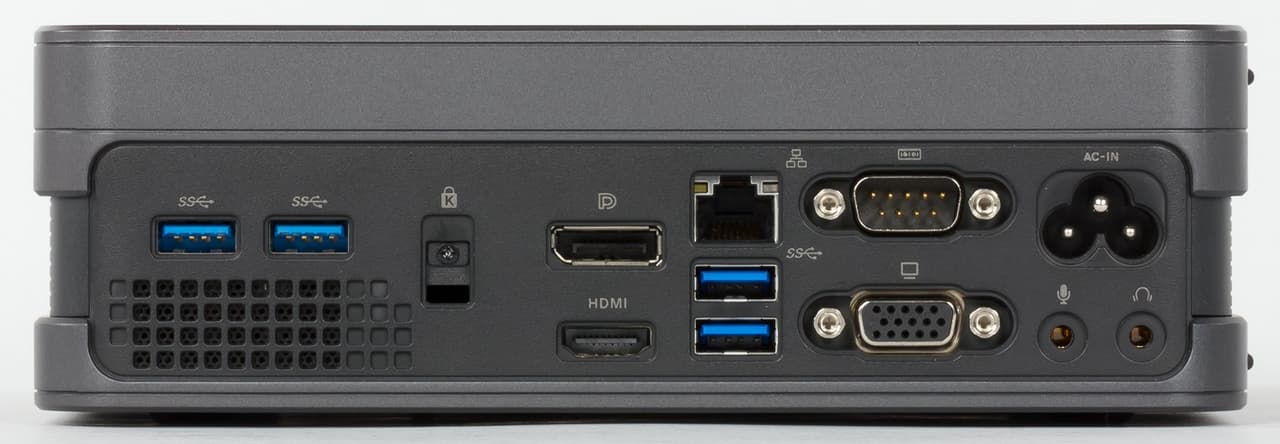 Как мы видим, конфигурация рассматриваемого компактного компьютера выделяется достаточно быстрым процессором и возможностью установки нескольких дисковых накопителей. Остальные параметры, включая оперативную память, интерфейсы и сетевые контроллеры, вполне характерны для большинства современных традиционных вычислительных систем. Определенный интерес могут вызвать сегодня и порты VGA и COM. При этом устройство не имеет внешней видеокарты и на роль игровой системы не претендует. Учитывая это, устройство можно считать «усиленной» версией массового универсального компьютера, способного выполнять широкий класс задач, включая требовательные к вычислительной производительности. В определенных сценариях его можно также использовать и как минисервер, если накопителей формата 2,5″ вам будет достаточно.