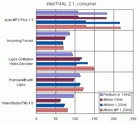 Отличается P4AL от SYSmark 2000 и тем, что используются более простые сценарии работы приложений. Например, преобразование только аудио/видео файла, проигрывание клипа и т.п.