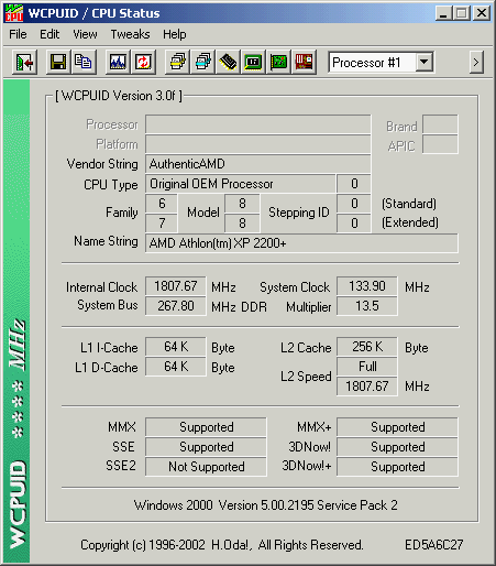 - AMD Athlon XP (Thoroughbred) 2200+ (1800 МГц, 133x13,5), Socket 462 (Socket A)