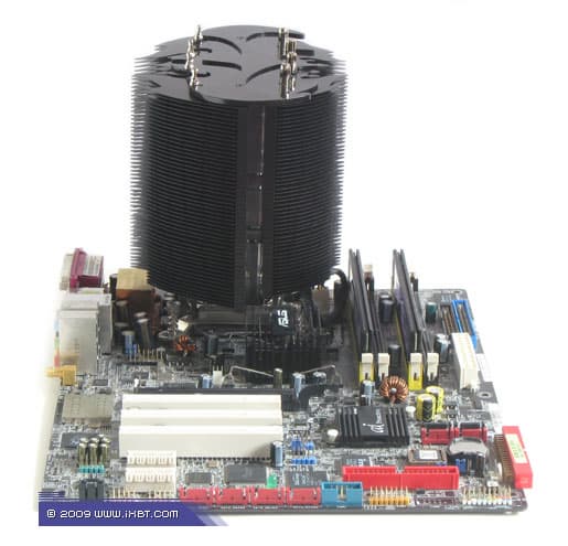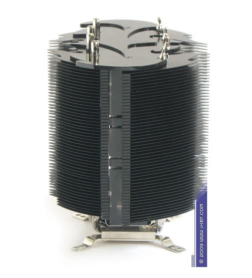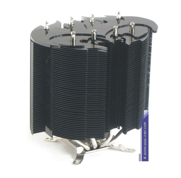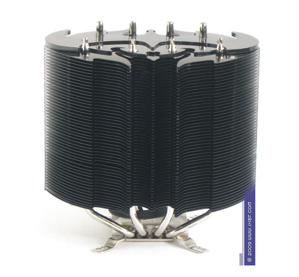 Конструктивные особенности (радиатор). «Рабочее тело» кулера образовано комбинацией медного теплосъемника 38х40х5 мм, 4 медных тепловых трубок диаметра 6 мм и 2 секций алюминиевого оребрения (50 пластин в каждой секции, общая площадь поверхности теплообмена порядка 8500 см2).
