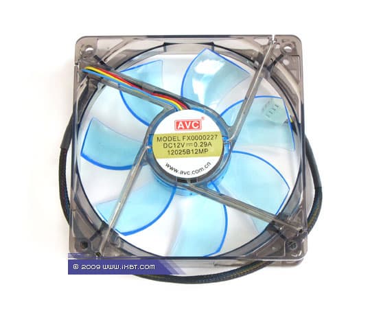 Конструктивные особенности (вентилятор). Кулер оборудован фирменным вентилятором AVC 12025B12MP модификации FX0000227 (номинальная скорость вращения крыльчатки 2000 об/мин).