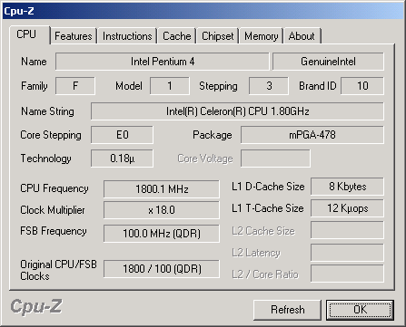 - Intel Celeron (Willamette-128) 1,8 ГГц (100x18), Socket 478