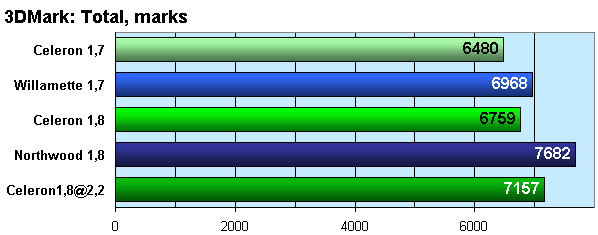 Уже в SYSmark отставание Celeron от Northwood перевалило за 10%, местами доходит и до 20%. Исследованные нами игры сохраняют эту тенденцию, и именно эти цифры позволяют нам окончательно сформулировать выводы.