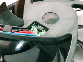 Сама скорость вращения вентилятора регулируется (от 800 до 2800 об./мин.) встроенной схемой, управляемой от термистора, помещенного (внимание!) на радиаторе кулера вблизи его основания, а не на входящем потоке воздуха, как это обычно бывает в подобных случаях.