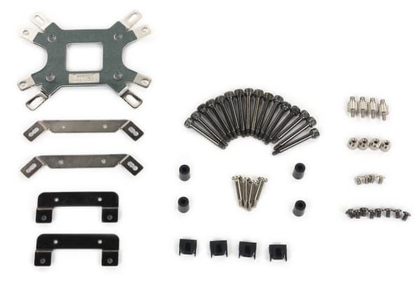 Устанавливать водоблок на процессор достаточно удобно (во всяком случае, на LGA2011). В ряде других случаев придется устанавливать рамку на обратную сторону платы, что потребует ее демонтажа, если в корпусе не предусмотрено соответствующего окна. К самому водоблоку элементы крепежа прикручиваются винтиками. Все довольно наглядно, можно даже в инструкцию не заглядывать.