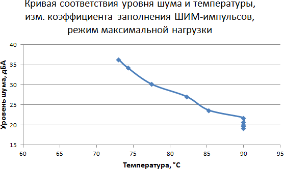 Этап 5. Построение кривой соответствия уровня шума и температуры в зависимости от скорости вращения вентилятора кулера при управлении с помощью ШИМ-импульсов