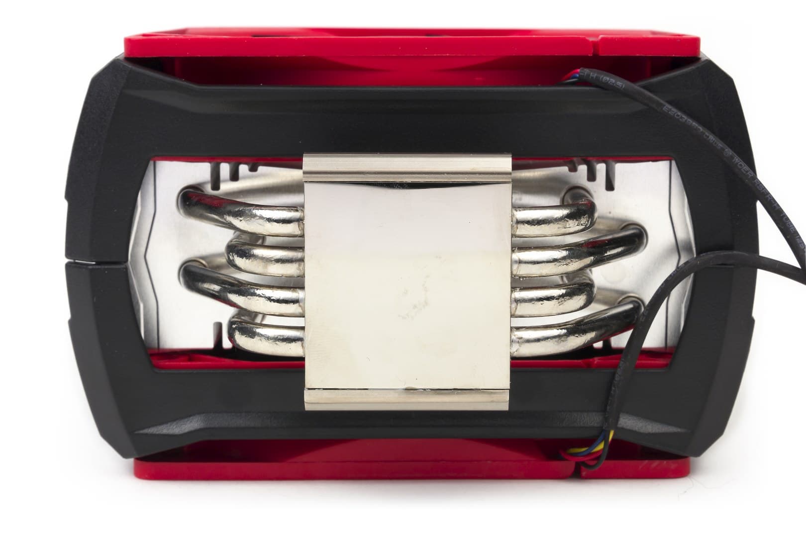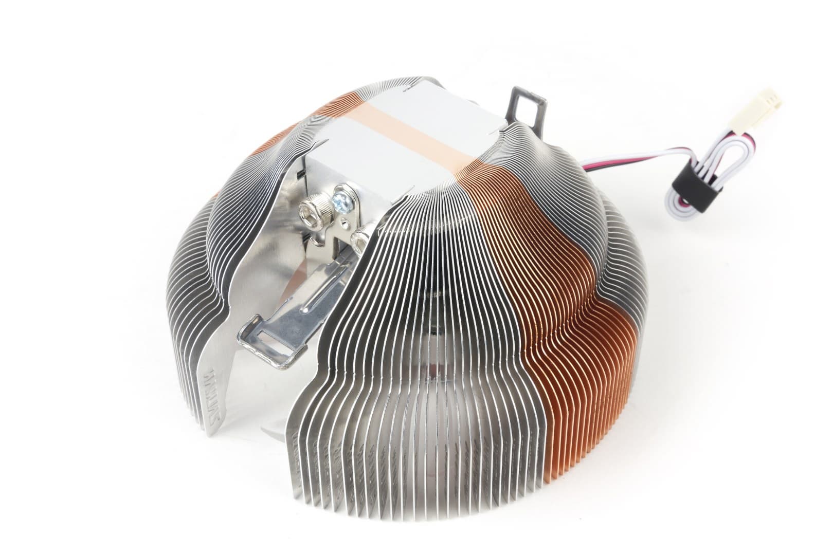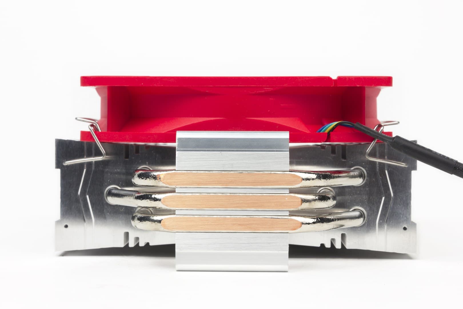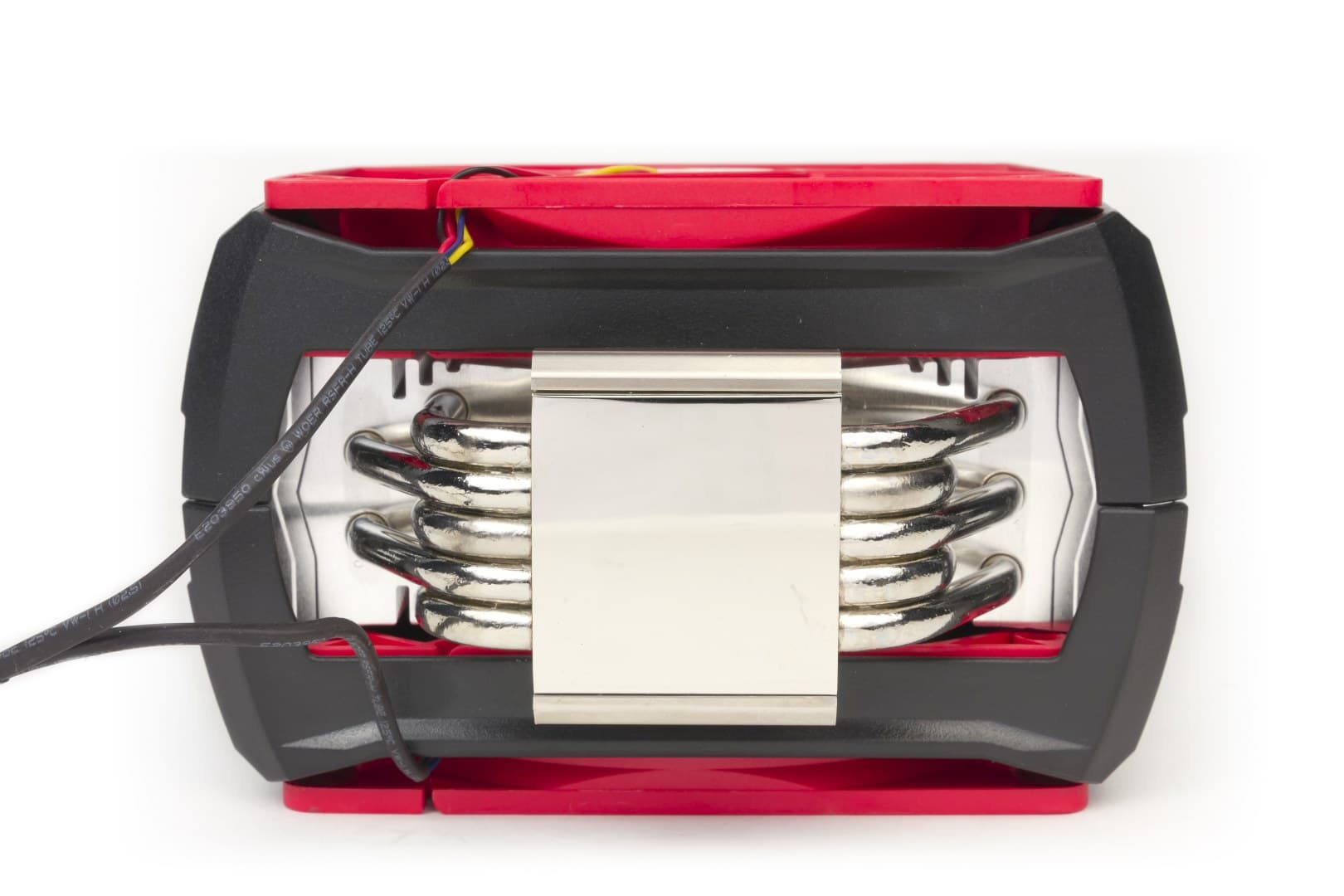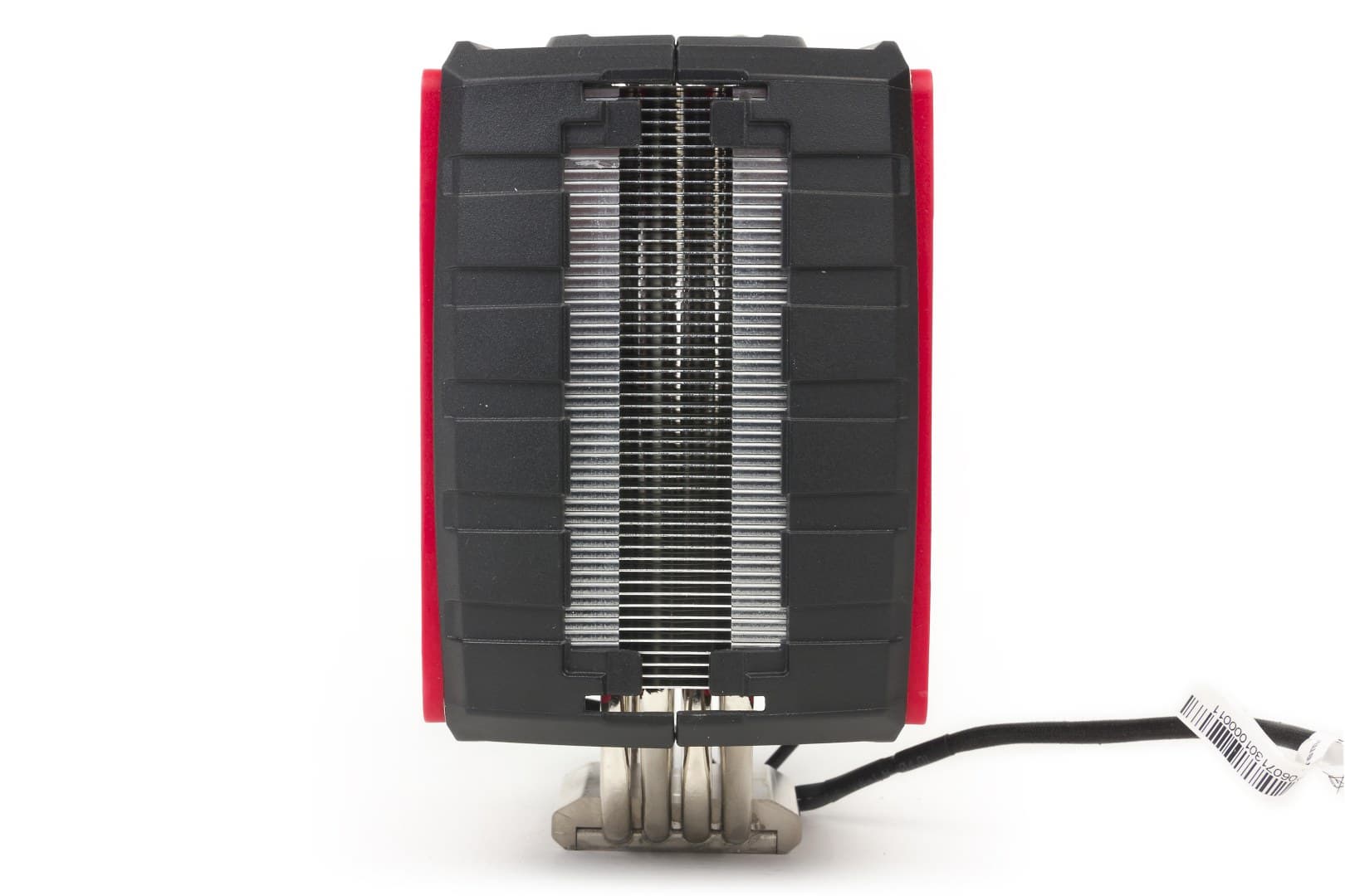 Тепло от подошвы к радиатору передают 5 тепловых трубок диаметром 6 мм, сам радиатор набран из алюминиевых пластин толщиной 0,4 мм (с шагом между ними 1,7 мм).