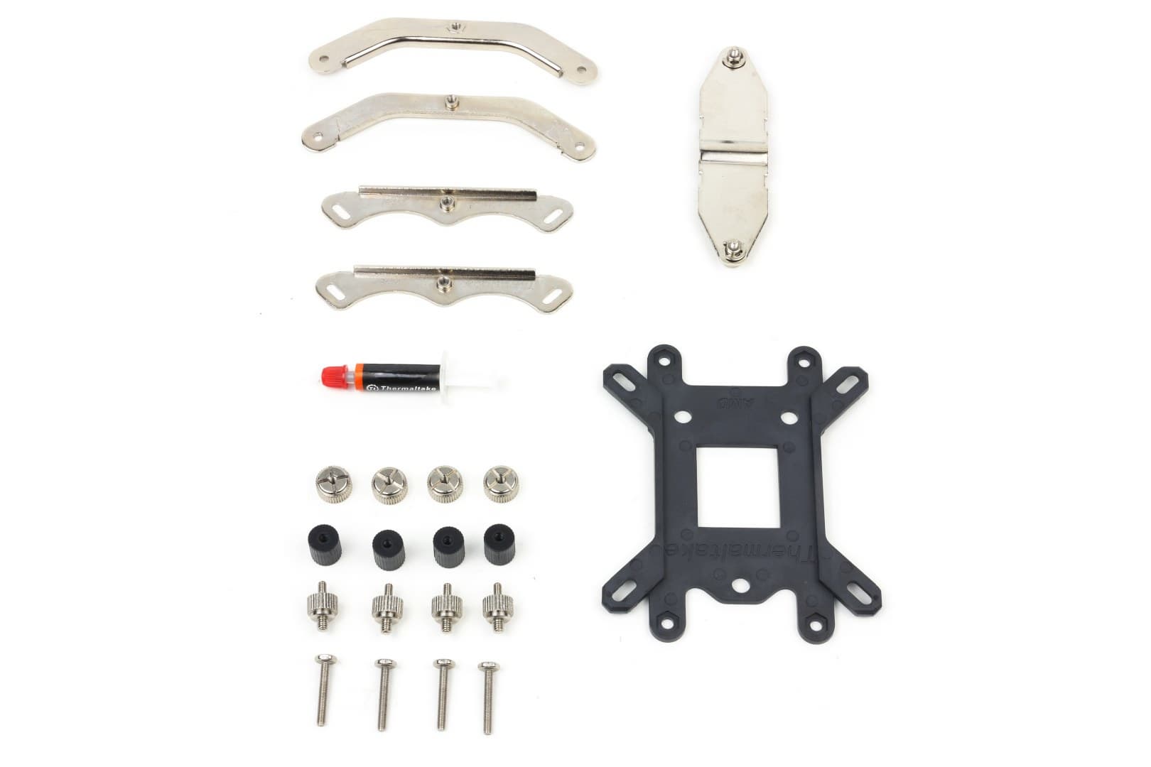 В комплекте имеется крепеж на все процессорные разъемы, актуальные в настоящее время. Для установки на большинство разъемов, в том числе на Socket FM2, как у использовавшегося в тестировании процессора, приходится монтировать планку с обратной стороны материнской платы, а сверху собирать рамку из отдельных деталей, в том числе мелких втулок и гаек. Установка, таким образом, получается далеко не интуитивная и кропотливая.