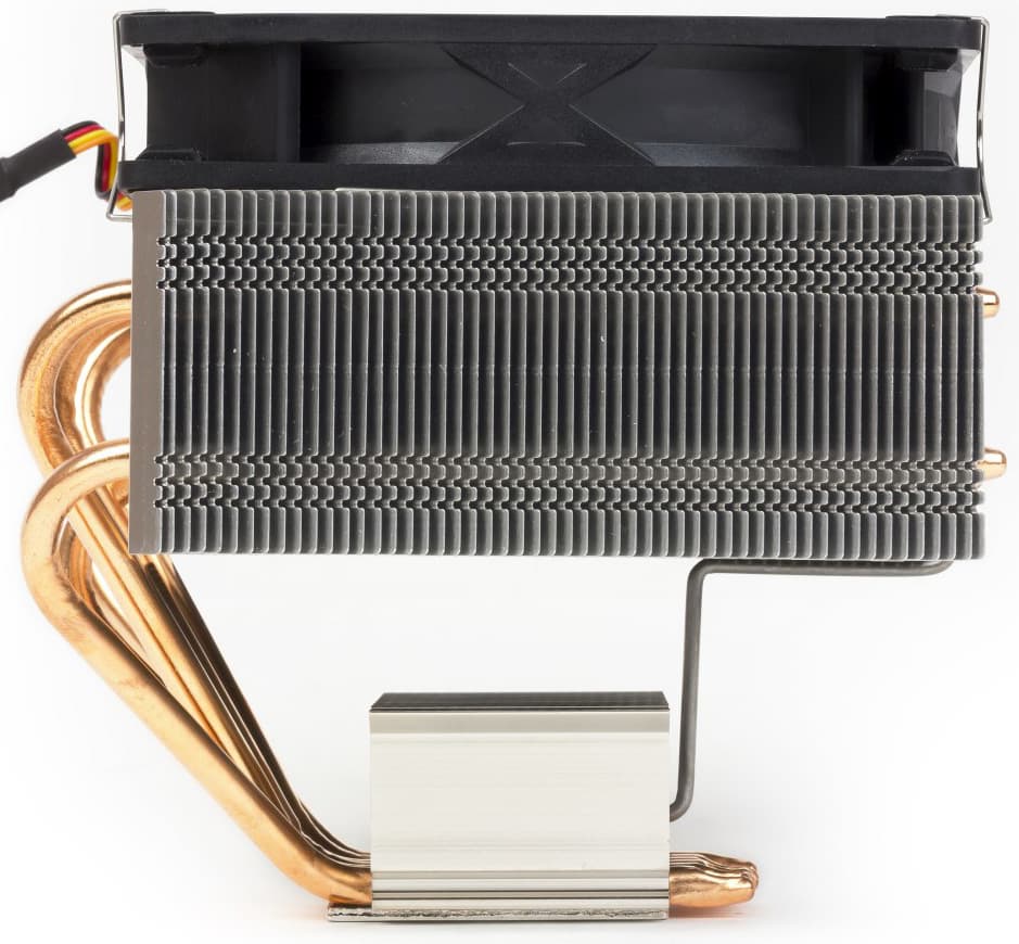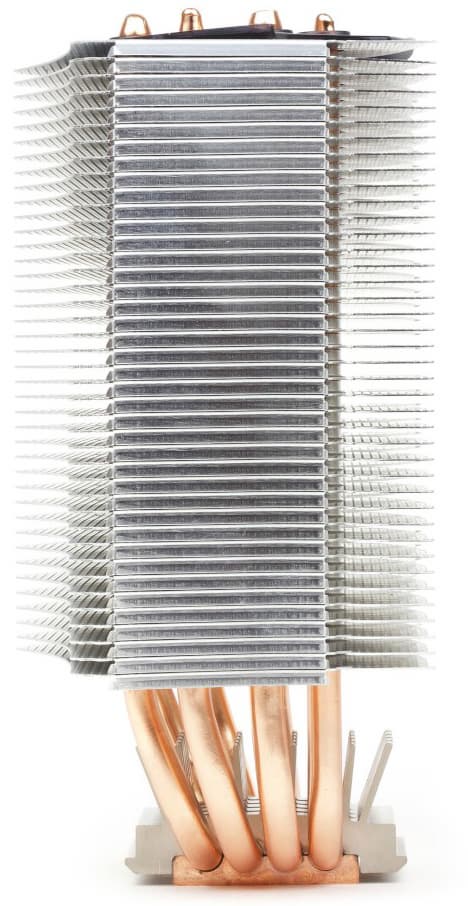 Шесть тепловых трубок передают тепло от никелированного медного основания радиатору, состоящему из алюминиевых ребер. Ребра очень тонкие (около 0,15 мм), расположены на расстоянии 2 мм.