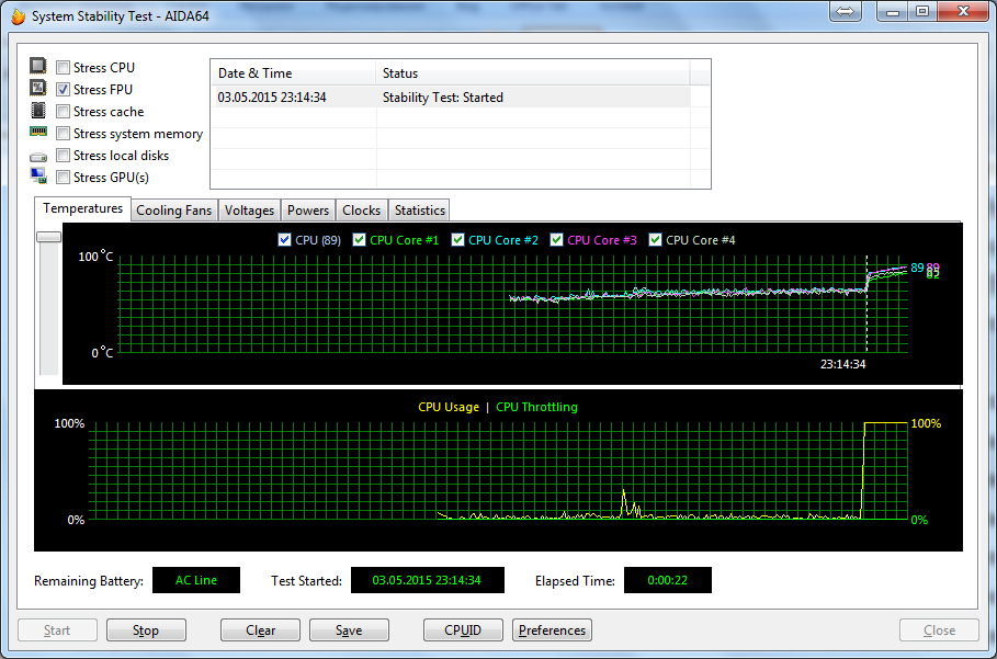 Процессор загружался на 100% с помощью утилиты AIDA64 и ее теста Stress FPU, который использует вычисления с плавающей запятой и в большей степени нагревает процессор.