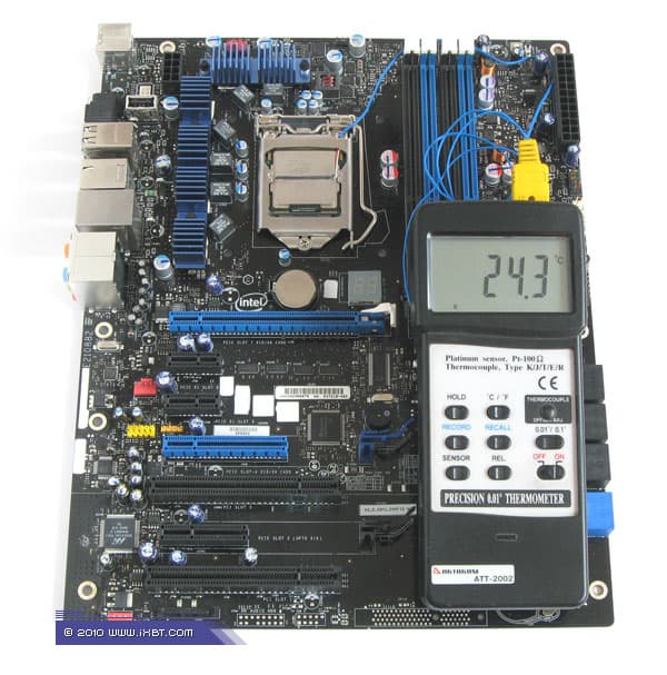 Что же тогда делать? Конечно же, следовать рекомендациям известного политика и революционера двадцатого века В.И. Ульянова-Ленина идти другим путем! Благо, такой путь есть и дорога эта проторенная, без ухабов и выбоин! Та же самая компания Intel в процессе валидации кулеров нисколько не стесняется использовать «дедовские методы» проводить съем температурных показаний не во «внутренностях» эмулятора процессора TTV (термодиодом и т.п.), а снаружи, на «крышке» с помощью незатейливого комплекса термопары и цифрового термометра. Почему бы и нам не применить схожую методику?